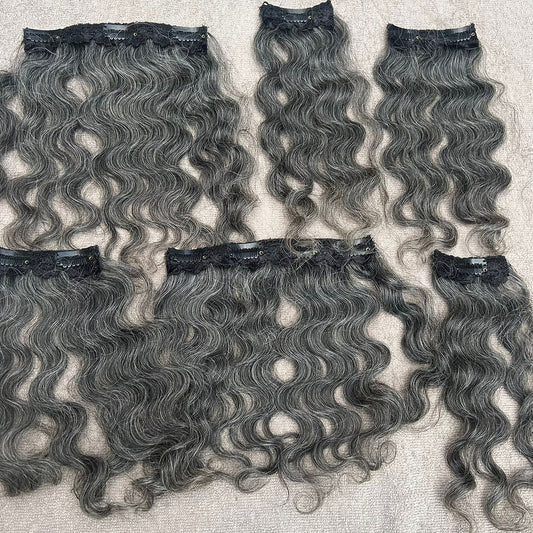 Out of stockClip In Raw Natural Grey Curly Hair Extensions