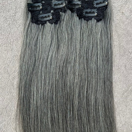 Out of stockClip In Raw Natural Grey Straight Hair Extensions